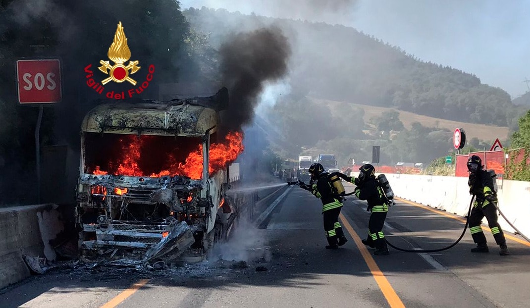 Tir in fiamme su A1 tra Firenze e Mugello